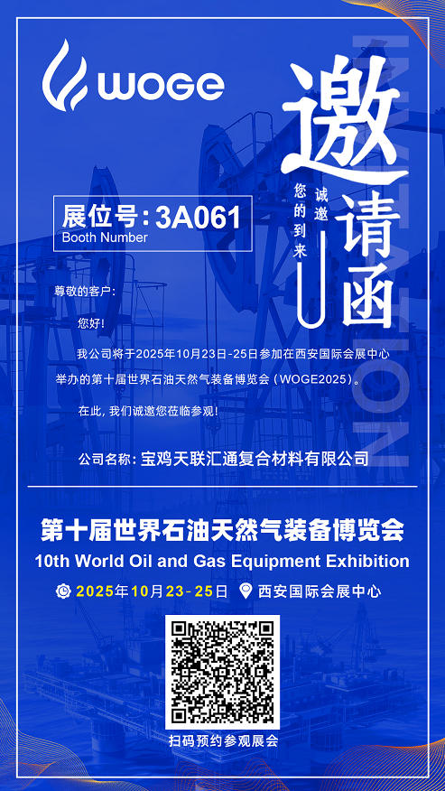 (中国,西安) – 行业瞩目的2025世界天然气展览会(WOGE)将于10月23日至25日在西安隆重举行。作为中国高性能复合管材领域的领军企业,宝鸡天联汇通复合材料有限公司(以下简称“天联汇通”)将盛装出席本次国际能源盛会,并隆重展示其创新标杆产品——增强热塑性塑料管(RTP),诚邀全球能源行业伙伴莅临展台,共话能源输送安全与效率的未来。