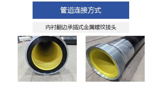 内衬翻边承插式金属螺纹接头是将耐磨材料内衬翻边,再将接头和复合管进行扣压连接,现场只需进行螺纹连接即可。结合了金属接头的强度和非金属材料耐磨性能,具有优异的耐磨性能、耐腐蚀性能、高强度、快捷安全等特点。